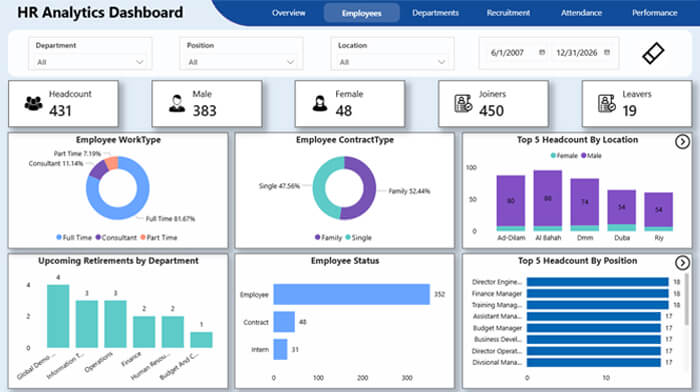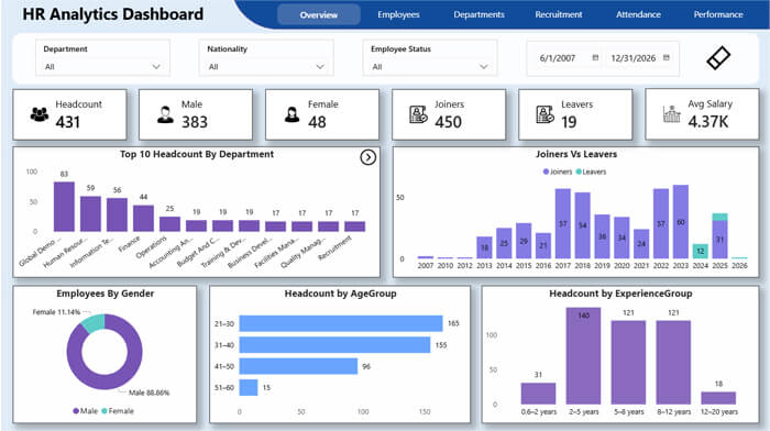The HR Dashboard delivers a unified view of your workforce by transforming HR data into clear, actionable insights. Designed for leadership and HR teams, it supports smarter people decisions through accurate, real-time analytics.